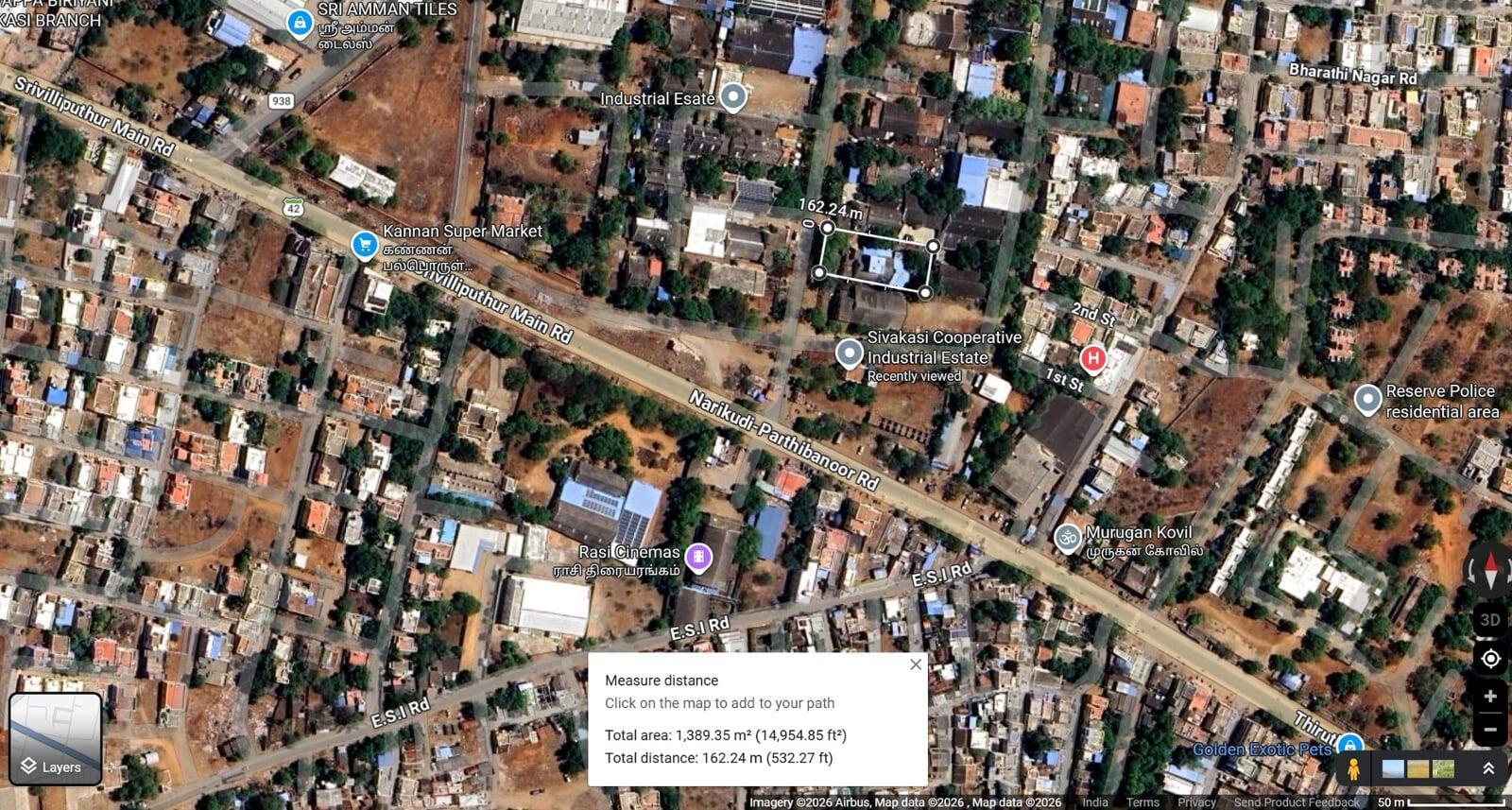 Unit description : Situated approx 20 m from the SIDCO main entry gate (formerly Sivakasi Industrial Estate ) an area of 34.3 Cents factory unit with nicely covered working area sheds , office room , suitable parking areas with water tank and all year through water via well in premises & other employee facilities.